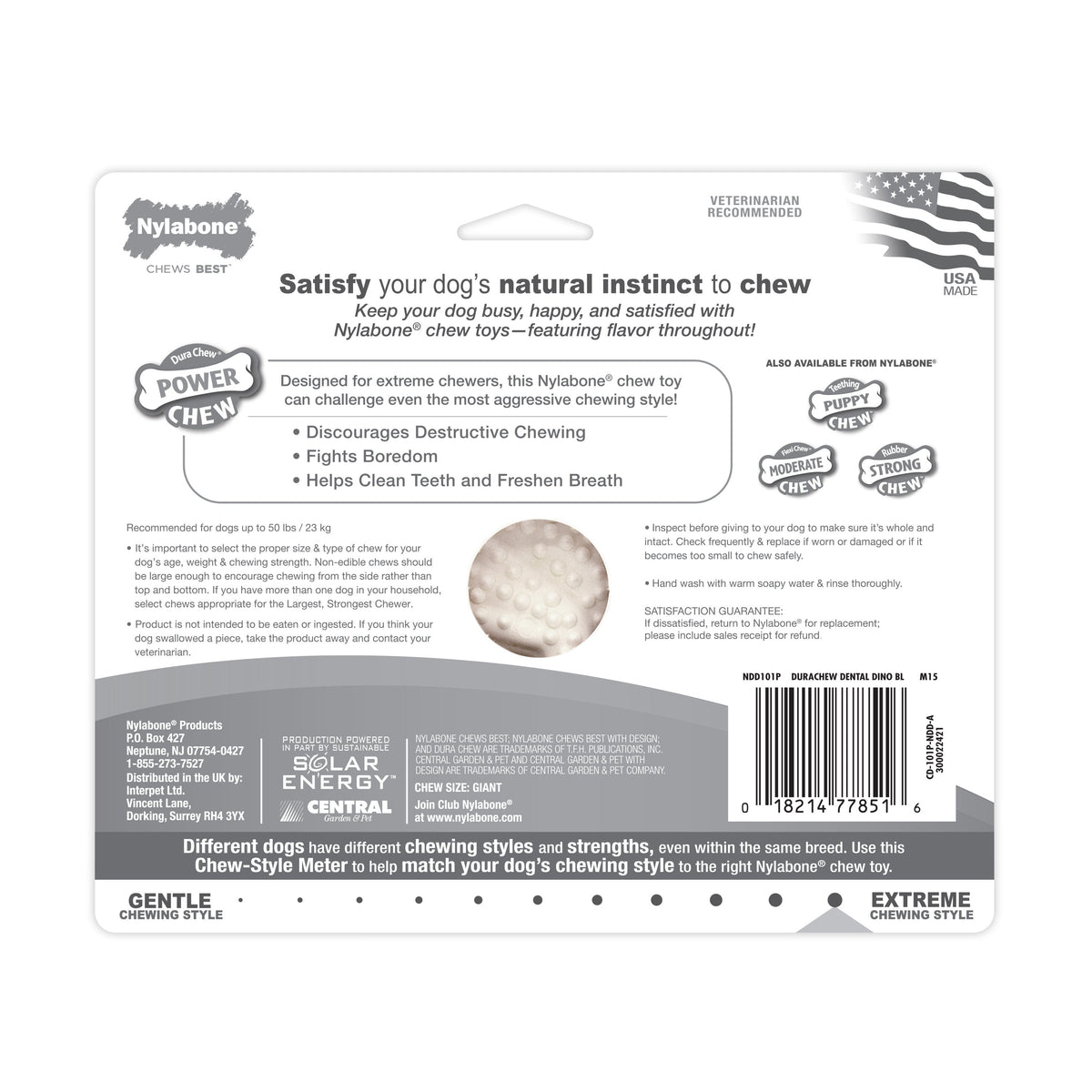Nylabone Power Chew Dental Dinosaur Dog Toy Chicken, White, 1ea/Large/Giant Up To 50 Lbs. 1 ct