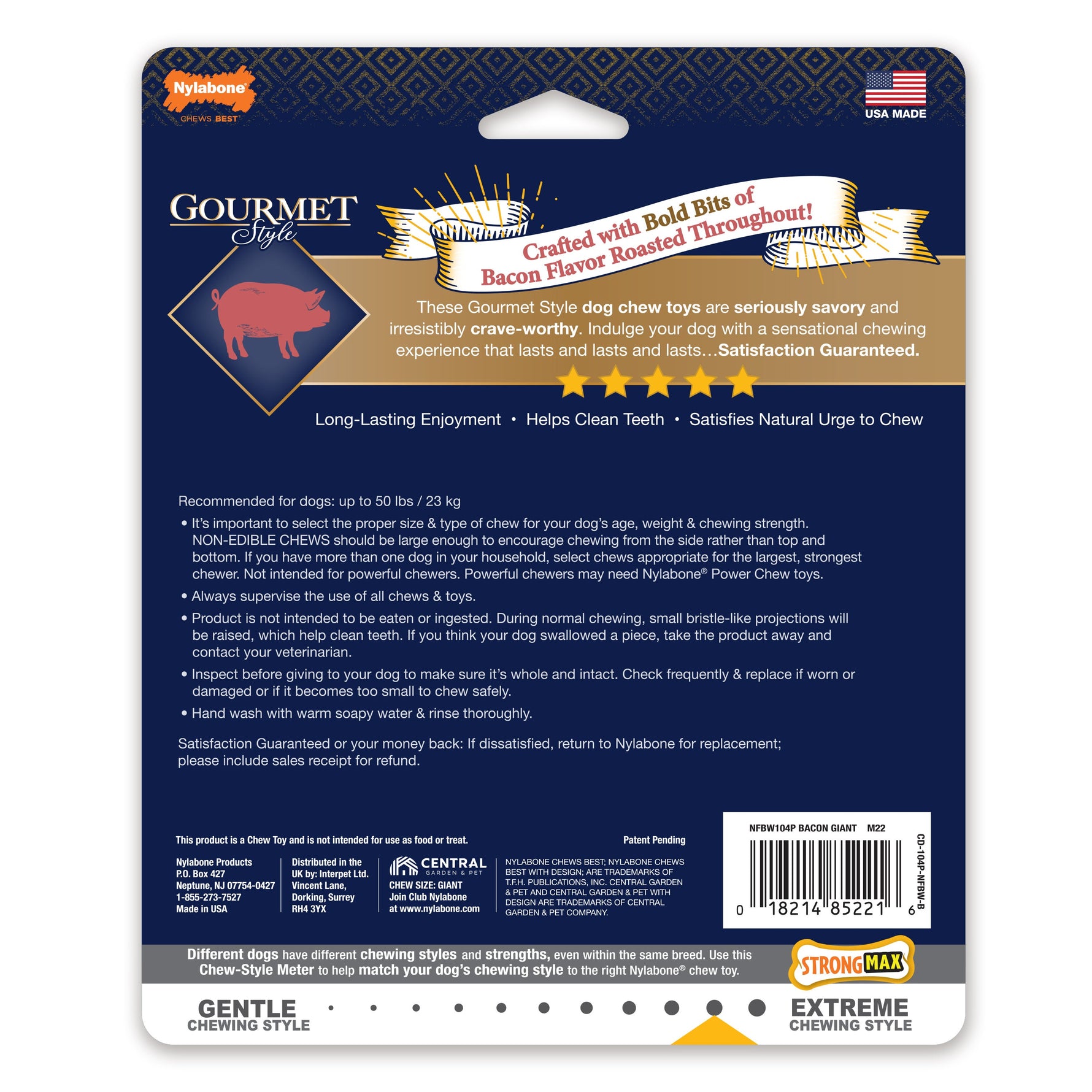 Nylabone Gourmet Style Strong Chew Wishbone Dog Chew Toy Bacon, 1ea/Large/Giant Up To 50 Lbs. 1 ct