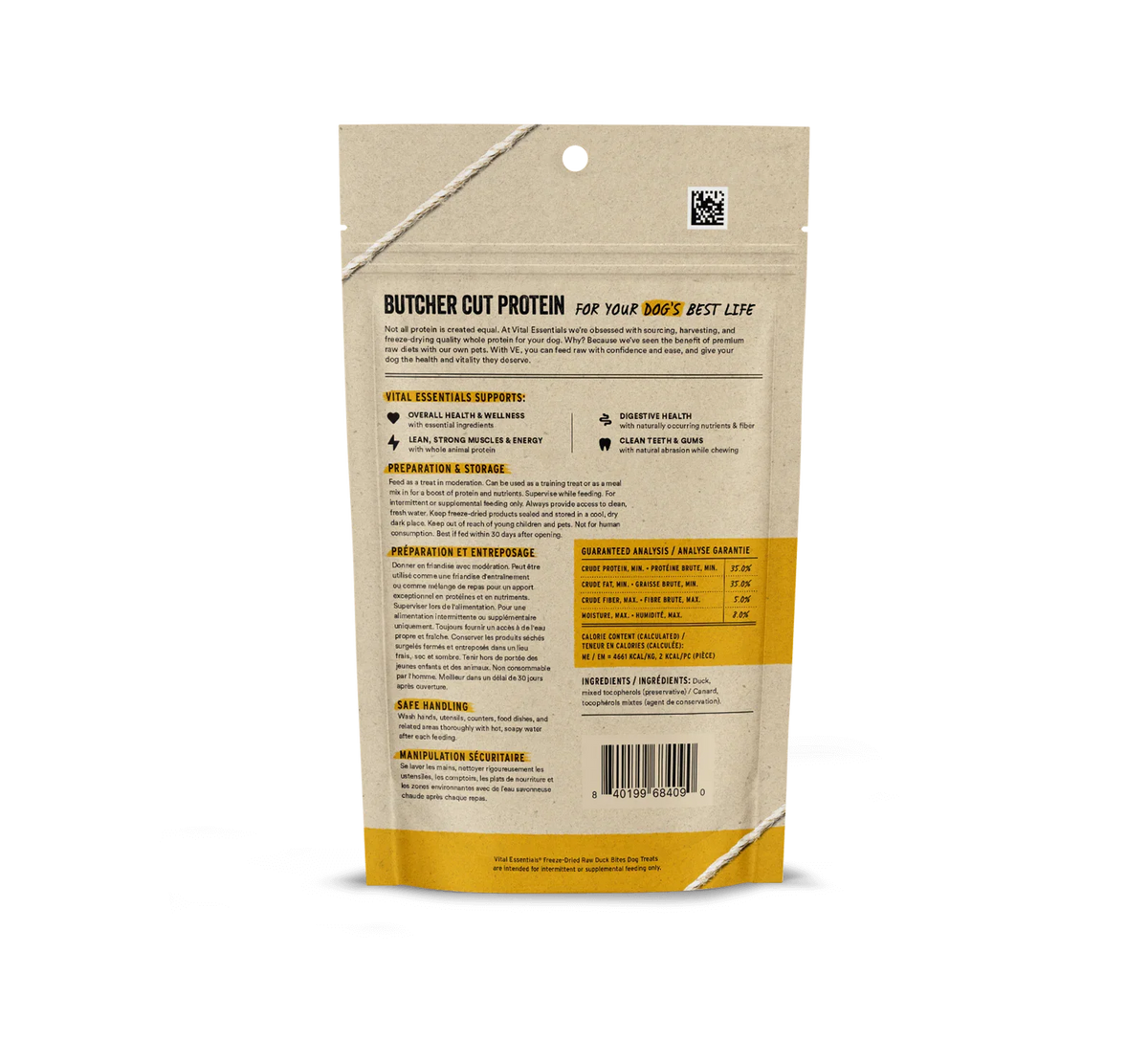 Vital Essentials Dog Freeze-Dried Treat Bites Duck 2oz.