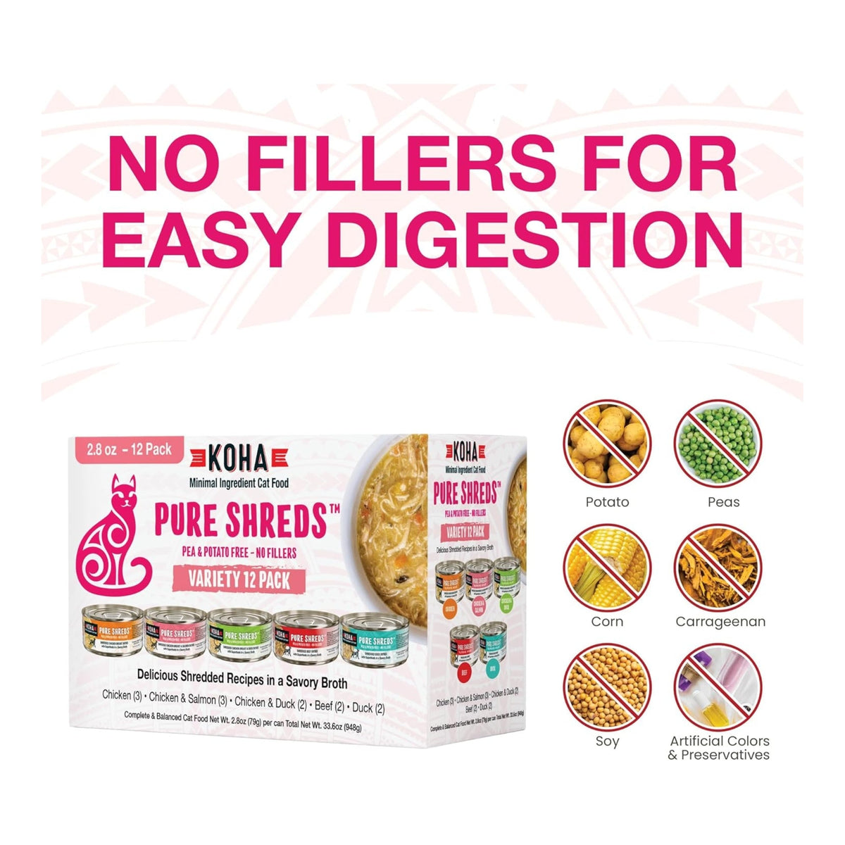 Koha Cat Grain Free Shredded 2.8oz. Variety Pack (Case of 24)