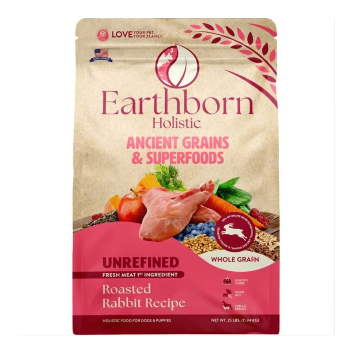 Earthborn Holistic Unrefined Ancient Grains & Superfoods Dry Dog Food Roasted Rabbit 25lb