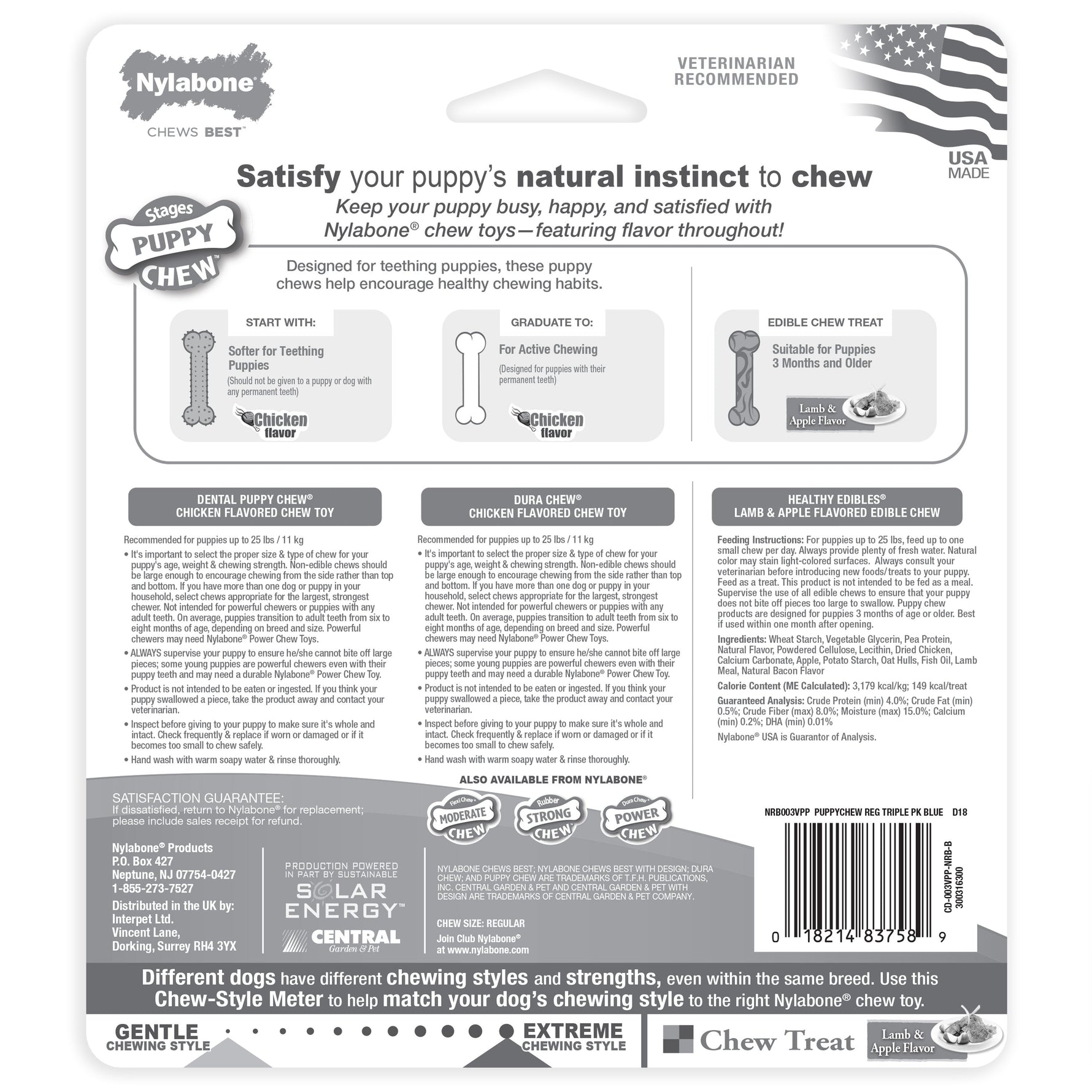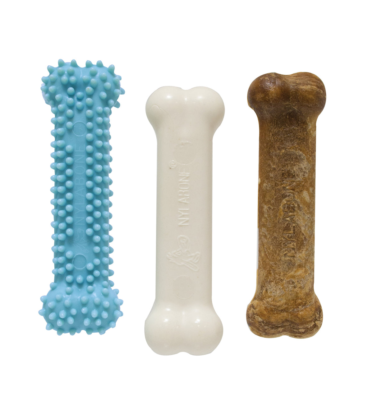 Nylabone Puppy Chew Variety Toy Treat Triple Pack 3 count, SMall/Regular Up To 25 Ibs.