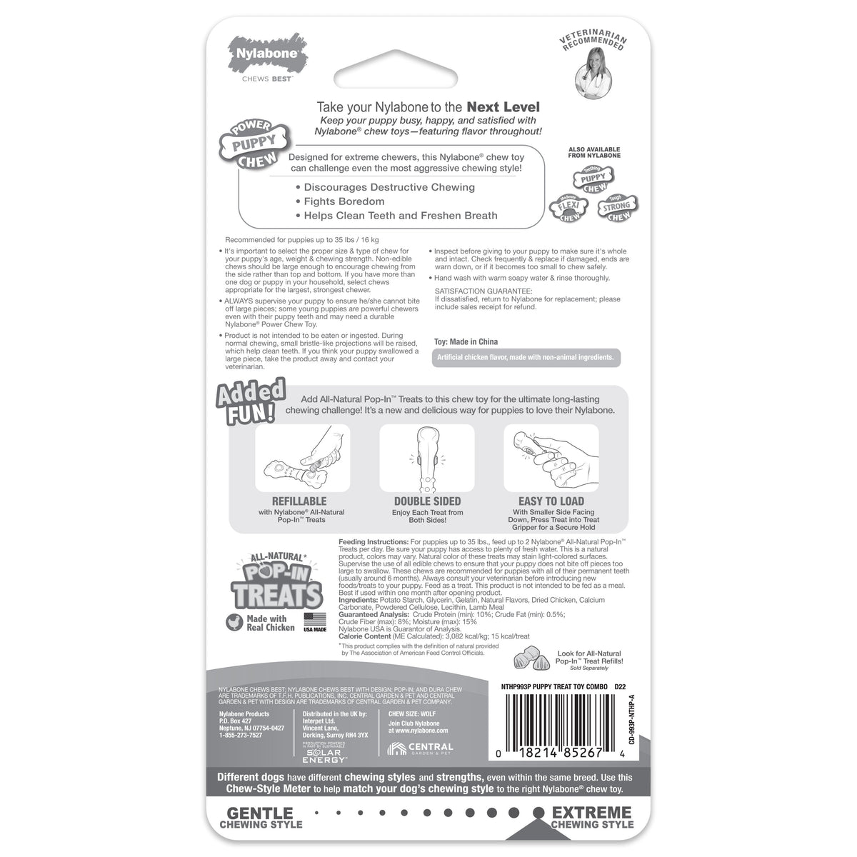 Nylabone Puppy Power Chew Knuckle Bone & Pop-In Puppy Treat Toy Combo Chicken 1ea/Medium/Wolf - Up To 35 lb