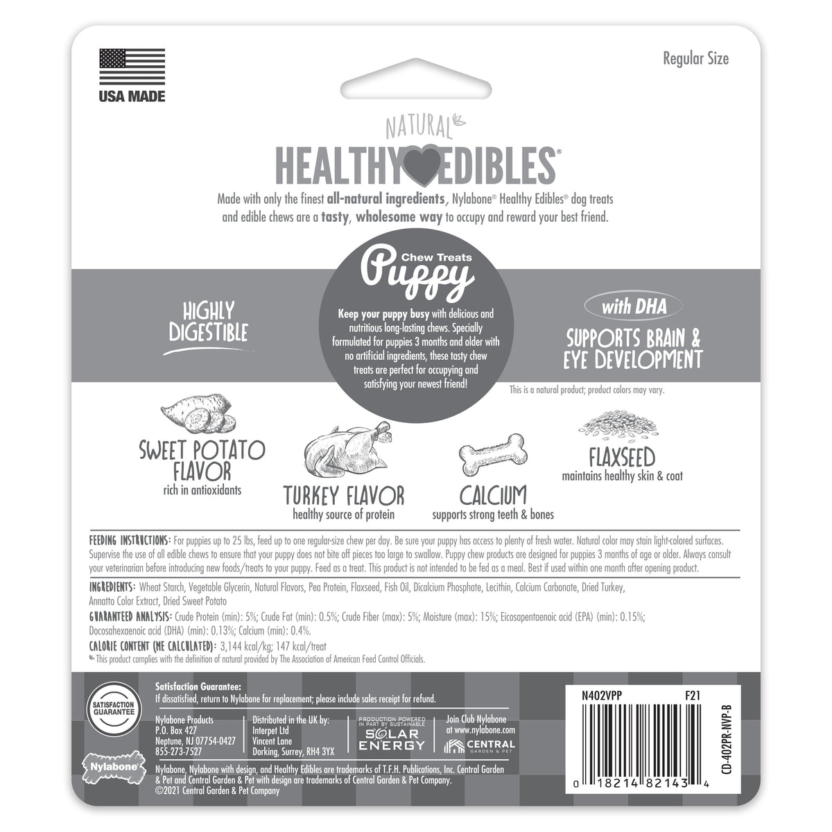 Nylabone Healthy Edibles AllNatural Long Lasting Puppy Chew Treats Turkey Sweet Potato, 1ea/SMall/Regular Up To 25 Ibs. 3 ct