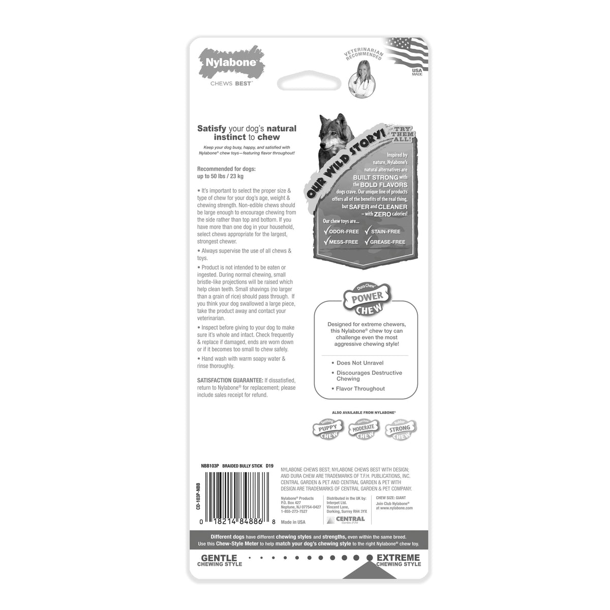 Nylabone Power Chew Braided Bully Stick Alternative Chew Toy Beef, 1ea/Large/Giant Up To 50 Lbs. 1 ct