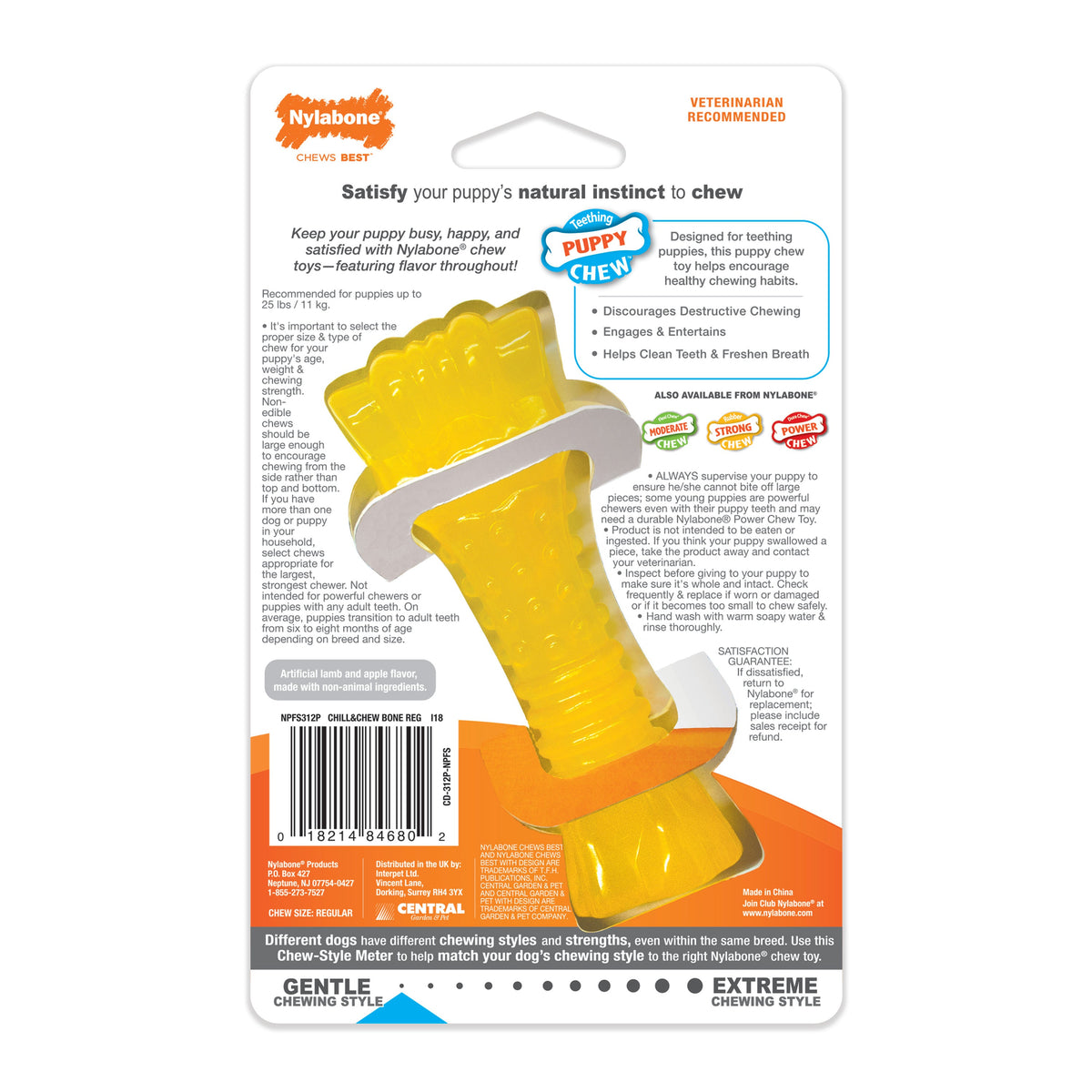 Nylabone Puppy Chew Freezer Dog Bone Lamb Apple, 1ea/SMall/Regular Up To 25 Ibs. 1 ct