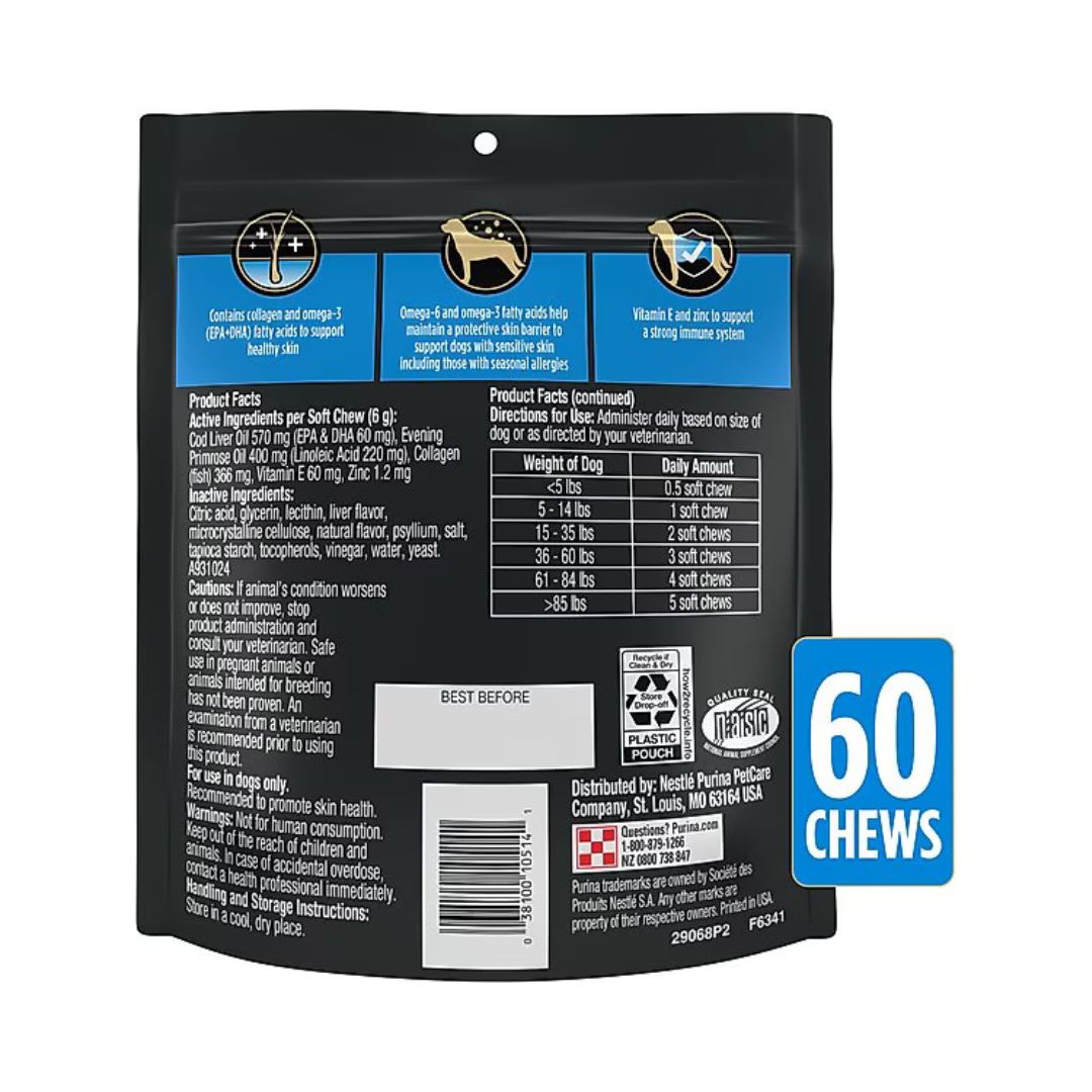 Purina Pro Plan Veterinary Diets Skin Care Soft Chew Supplement for Dogs, 60 count