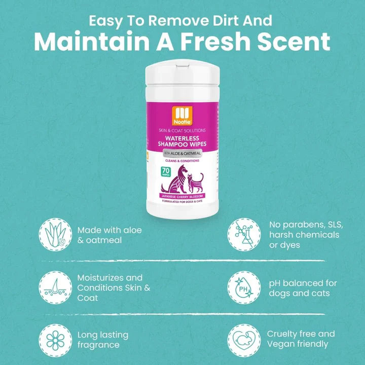 Nootie Waterless Grooming Wipes Japanese Cherry Blossom 70 Count